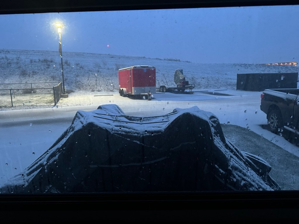 Yesterday (Thursday) after our stay at JD Hemphill’s Ranch thanks to Harvest Host, we drove north to Standish CA, and then followed HWY 395 further northeast to Alturas, CA. We ate a massive breakfast at the Wagon Wheel Cafe, and then continued until we hit 299 just past Canby, CA. When HWY 139 cut off to the northwest we followed it all the way to Klamath Falls, OR. This highway route is one of my favourites for scenery, low traffic and for uninterrupted listening of my iTunes playlists! We had some beautiful sunshine, and a few snow squalls (nothing sticking), but felt that we were lucky to have missed the major weather that went through the night before. Too soon, folks! Too soon!
