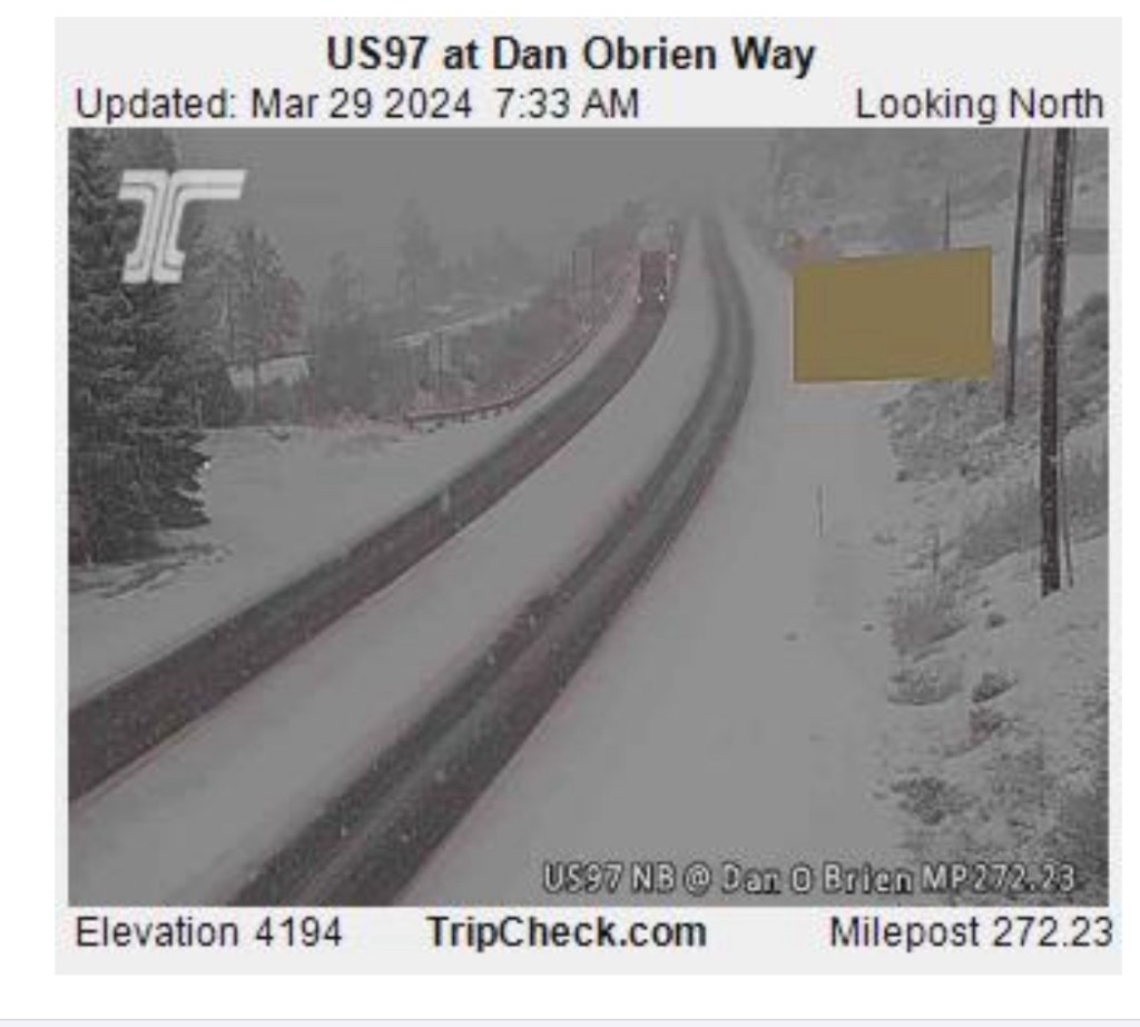 I found an App (OR Road Report) which shows all highways and all possible risks. It includes all the road cams, so I spend much of the next 2 hours checking the road cams.
