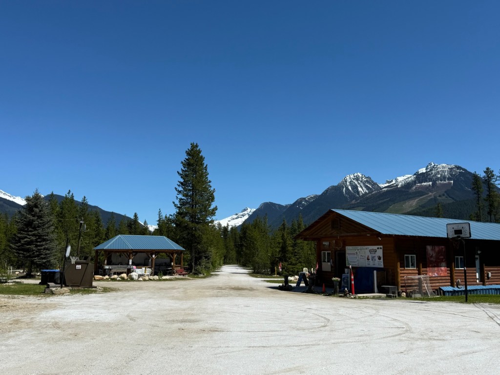 On Wednesday, we headed a short distance further along Hwy 5 to Blue River RV Campground. The day was forecast to be very hot. (We have been wondering why we chose 2 camp grounds so close together when we did our bookings, but decided it was probably because we wanted to ensure that we had a place for dump-out and refreshing water supplies before reaching a 2 day layover in Jasper.)
