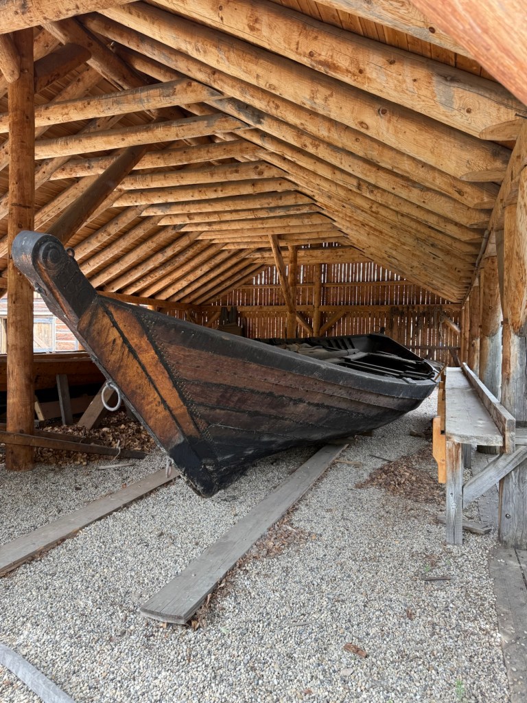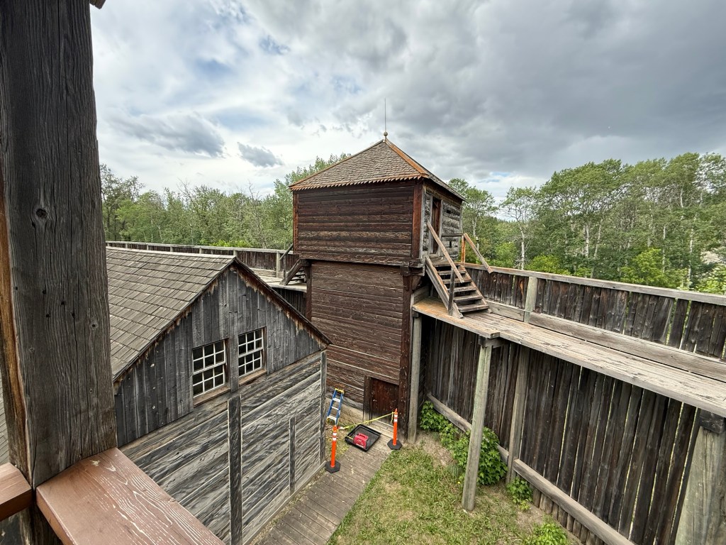 What an incredible development this park is! There is steam train that takes folks from the entrance to the other side of the park and then returns them. (A streetcar also runs from the more modern era displays to the entrance area. The park is divided into Edmonton’s “eras” with the earliest being the First Nations and Métis exhibits in a beautifully designed building. A recreation of the original “Fort Edmonton” has amazing displays of living quarters, tools, fur storage, a York Boat and even a bakery where two young men in period costumes turned out bannock bread and jam for the tourists. As you wander from the Fort, you walk through increasingly more modern eras, with store fronts, businesses, homes, etc. For the younger set there is an amusement park! We spent about 4 or 5 hours there and were all impressed!