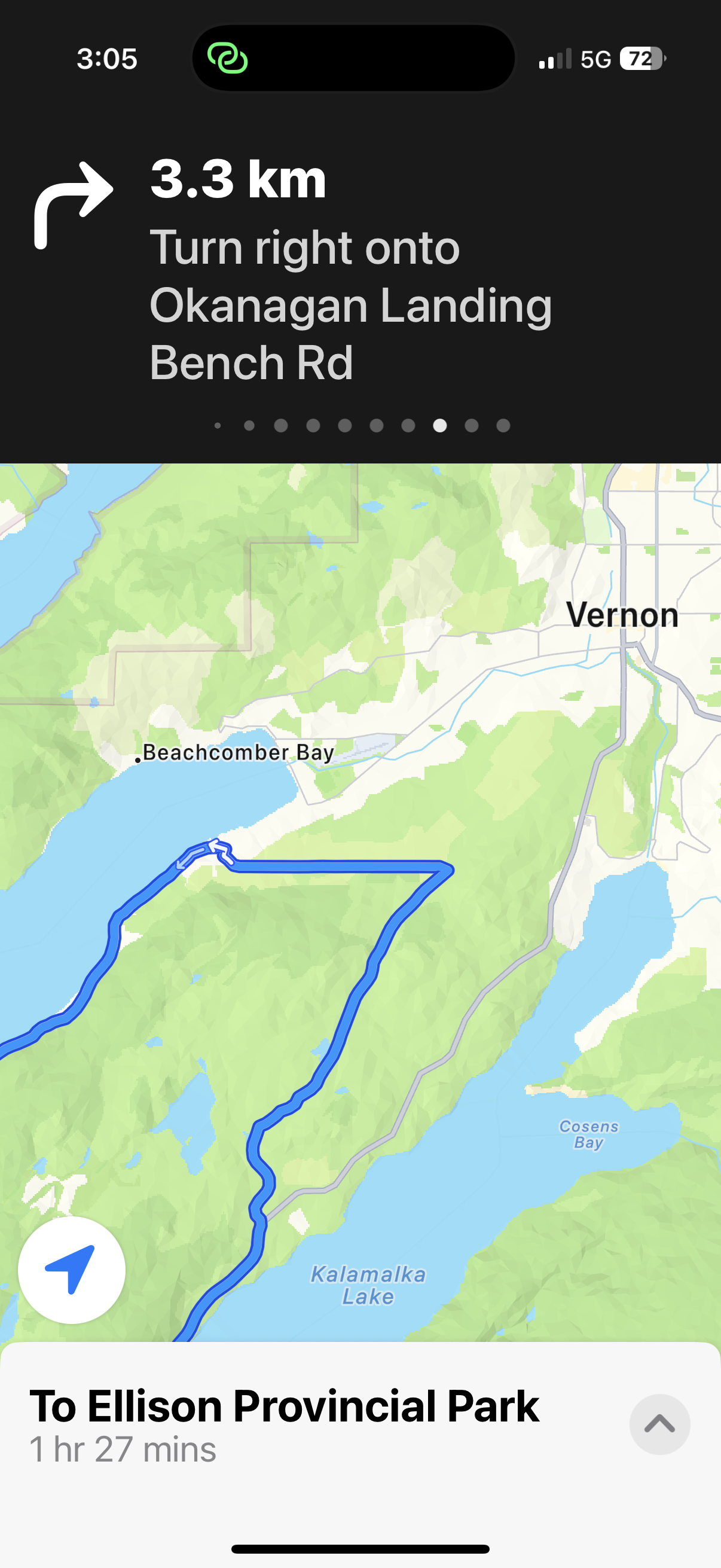 On Sunday we headed towards Vernon with a luncheon stop to visit cousins Norm and Shirley Caplette in Peachland. Later, as we approached Kalamalka Lake, the Map “app” (‘Roada’) had us turn left across the peninsula before arriving in Vernon, and after some twists and turns along a dodgy Bench Road, we were directed down “Okanagan Landing Bench Road”.
