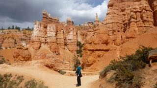 Wednesday, April 22 – Today we decided to take another day here at Bryce Canyon, so we began with a trip to the Visitors’ Centre to get some more cash to pay for our campsite tonight. Then, with sun finally bringing some warmth to the air, we took the 2.2 mi. hike down into the bottom of the canyon and then back up to the top. (Sunset Pt. to Sunrise Pt. to Queens Garden Trail to Navajo Trail.) The exercise felt good, and lunch even better afterwards!