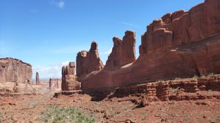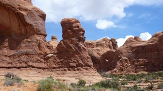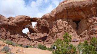 We watched as the young girls were being given final instructions for packing (no make-up bags), but we were on our way in two vehicles headed to Arches National Monument before they were ready to leave. We arrived at Arches about 3/4 of an hour later to see a long line of cars waiting to enter the park. We were finally into the Park within about another 1/2 hour, then we began the switch-back climb up towards more geological wonders! This was a 2-battery day for my camera, and once again stunning vistas and amazing rock formations had us pulling off into all the lookout areas.