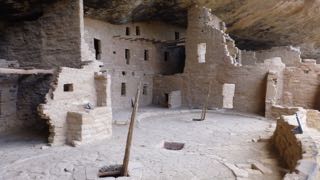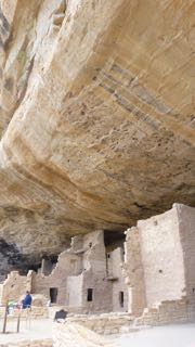 Our plan on Tuesday was to visit Mesa Verde, so we headed up to the Visitors Center at 9:00. From the VC into the scenic mesas (one still closed for winter) is a long climb of about 20 miles. The temperatures hovered around 10 C to 12 C, so we stayed in sweats and down vests as we toured all the walk-in sites along the top of one of the mesa loops in the bright sun. Some of the Ancestral Pueblan sites are surface pueblo structures on the mesa tops, while the later (900 AD to 1200 AD) were cliff dwellings – some with three story apartments. (BTW…the term “Anasazi” is no longer used as apparently it was a Navajo word, not a Pueblan word, and it referred either to the “Ancient ones” or “Ancient enemies”.) There seems to be no mystery as to why they were abandoned somewhere around 1300 AD. There was a prolonged drought of about 25 years, and the clans moved south. Their ancestors remain to this day in tribes such as the Zuni.