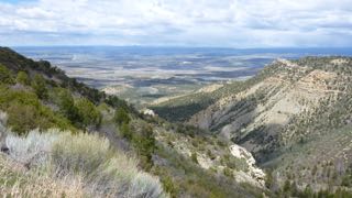 Monday, April 27…On our way just shortly after 9:00 with Mesa Verde as our destination today. Since the Park Campgrounds are not open for another couple of days, we opted to book Mesa Verde RV Campground just outside the Park. Once again we headed on the road towards Arches and Moab, and as we travelled we listened to NPR (our only radio choice when in the US), and a broadcast talking about top books to read. One of the program guests owned a bookstore in Moab – “Back of Beyond”, and one of his strong recommendations was a book about Edward Abbey – the author of the book I just finished – “Desert Solitaire”. Since I have very mixed feelings about the author, I decided to try to find the store in Moab. I parked on Main Street, and Sandy got out and disappeared into a bookstore right beside Truck House. I looked up and sure enough – it was “Back of Beyond”! I went in, pointed to the man behind the counter, and told him, “I just heard you on NPR a few minutes ago!” He was thrilled, and I ended up buying the book that he recommended on Edward Abbey. He wins!