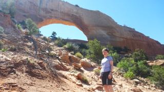 Monday, April 20 – After getting a new tire on Monday morning in Blanning’s only tire store we were ready to tackle the highway 95 up into the Natural Bridges National Monument. It was easy to maintain speeds of 65 mph as the highway, once again, was almost empty. (We have definitely found our share of lonely roads on this trip!) About noonish, we headed off the main highway towards the Visitors’ Centre and campground area (which was full).