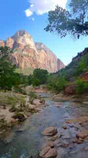 The mountains surrounding the Virgin River are truly spectacular, and Zion Park is one of those “must see” geological formations that seem to be so plentiful in the US Southwest! Some peaks are jagged and red, while others seem to be covered with frosting and have much gentler rounded edges. However, sheer rock faces rise extremely abruptly out of the valley below – a mountain climber’s paradise, methinks!
