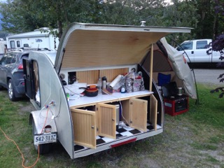 We stayed the night beside a tiny homebuilt “teardrop” trailer from Virginia. “Gary and Elaine” gave us the gist of their very long 2 month journey and showed us their very short rig – built for about $3800. Impressive!