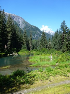 Back at Meziadin Junction, we turned south to the Meziadin Lake Campground and got a lovely spot close to, but not on the lake. This is a well-maintained, and very full campground. This has a few full hook-up sites, so it attracts the big-rigs!