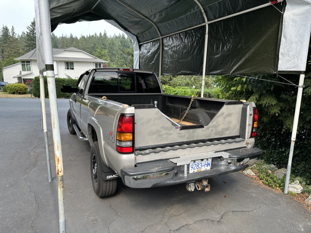 By the end of August, the hitch had been replaced, the truck scheduled for body work (mostly tailgate issues) in December, and I had constructed, out of plywood, a new tailgate.