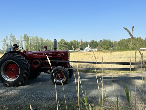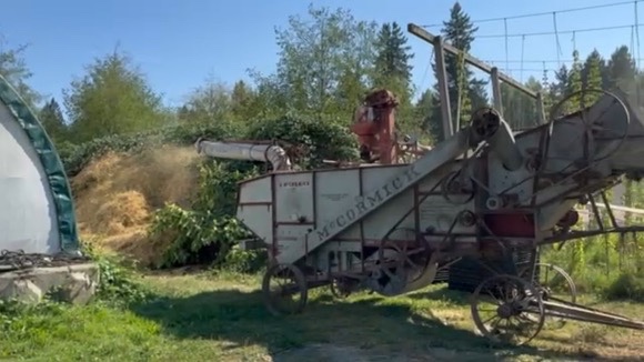 With TruckHouse Jr. in tow, we headed over to the Lower Mainland where we joined farming efforts at Sandy’s cousin’s Aldergrove Farm (and home of “Locality Brewing”). For several days we helped with harvesting barley, threshing, and finally hops picking.
