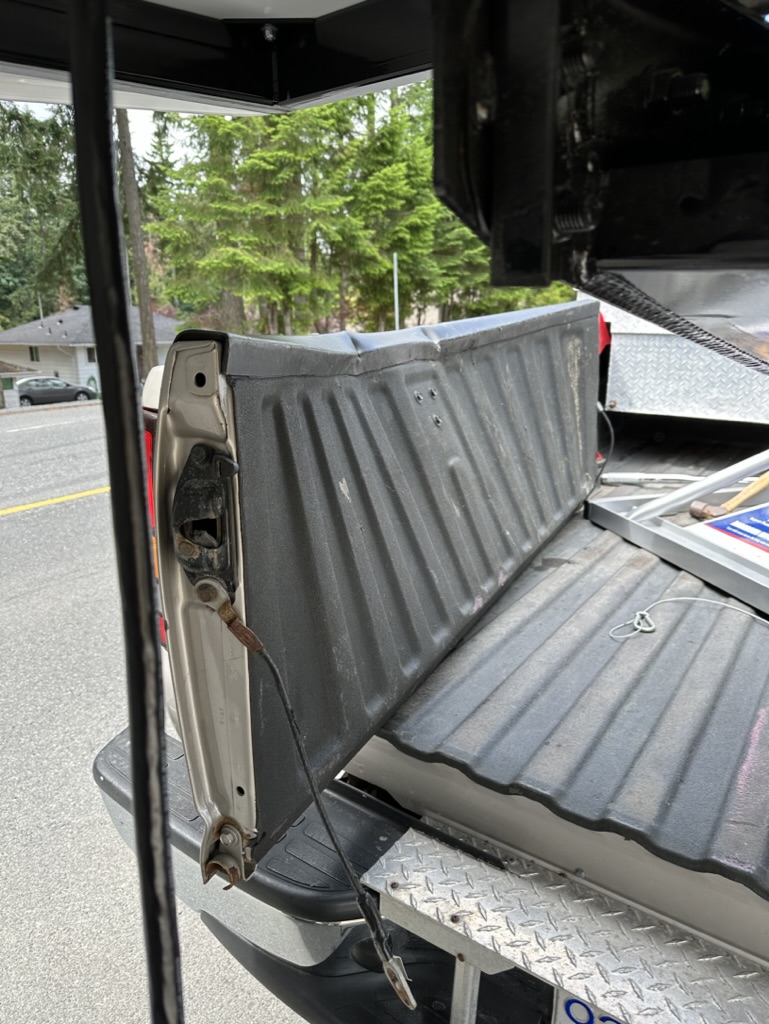 By the end of August, the hitch had been replaced, the truck scheduled for body work (mostly tailgate issues) in December, and I had constructed, out of plywood, a new tailgate.