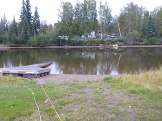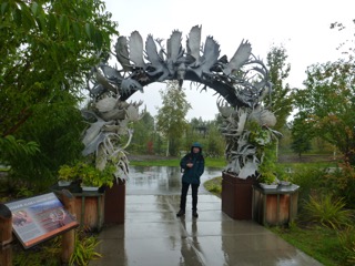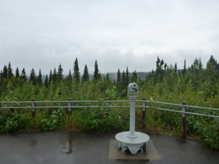 Anyway, back to the road… We passed up all scenic “photo opportunities” since they were a waste of time until we reached the summit above Fairbanks. The sun came out, and by the time we were settled in to our beautiful site at River’s Edge RV, we were able to get back into shorts and lounge in our anti-gravity chairs beside the lovely Chena River for an hour or two. However, the weather system caught up with us again and the temperature dropped as the clouds moved in. By morning today, steady rain was once again our current and forecasted outlook.